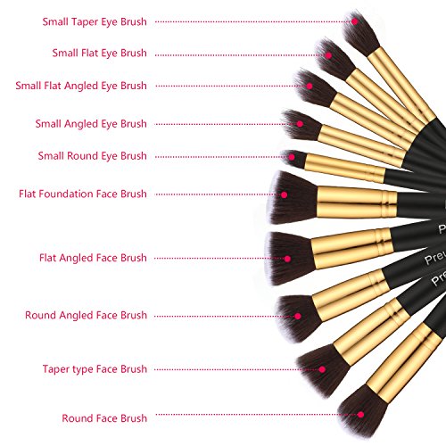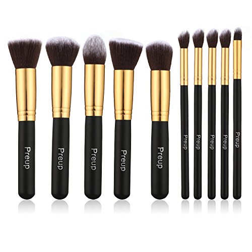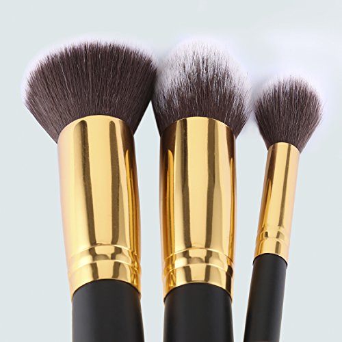 Beauty Makeup Brushes 10 Pieces Makeup Brush Set Professional Face Eyeliner Blush Contour Foundation Cosmetic Brushes for Eyeliner Face Powder Lip by Kingpeony (10pcs,Black+Gold)