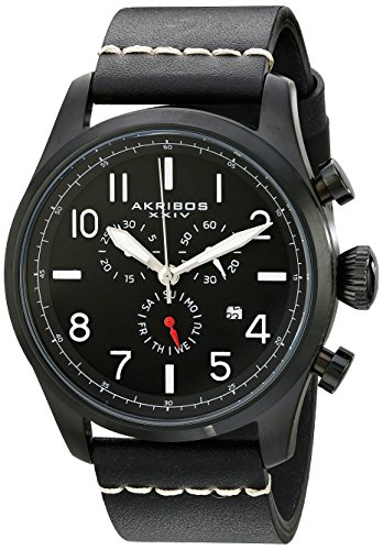-. Title : Akribos XXIV Men's AK705BK Ultimate Swiss Chronograph Black Leather Strap Watch