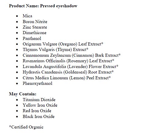Our eye shadows include pigments that create a broad range of effects ranging from subtle to dramatic shades to equally striking eyeliner, depending on your application technique (run small, angled brush under water before dipping in eyeshadow & apply as eye liner).