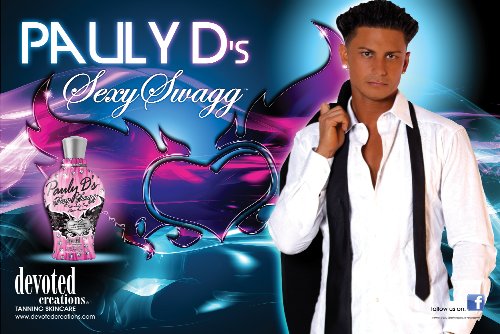Intoxicatingly Sexy. Bathe your skin in the silkiest, softest tanning créme, and give your body the attention its been craving. Enriched with a luxurious toning, tightening and Tattoo Fade Protecting formula, Pauly D's Sexy SwaggTM will be your guiltiest pleasure. This provocatively dark bronzer, and intoxicating fragrance will be sure to keep all of your senses heightened. DHA Formula blended with natural bronzers providing anti-aging and skin firming benefits with RevitaFit and MatrixylTM. This lotion with an Exotic Kiss fragrance uses a unique Tattoo Fade Protecting complex that works during and after your tanning session to facilitate the natural tanning process. Blended with multiple accelerators that work to target melanin production and achieve fast, dark tanning results. RevitaFit - Tones & tightens the skin. MatrixylTM - targeted anti-aging complex that reduces the appearance of fine lines and wrinkles for long-lasting results. MelanoBronze Technology - enhances the skin's natural pigmentation to help build a natural and healthy looking tan. This technology continues to work long after UV exposure to protect the skin and stimulate melanin in the melanocytes for a faster, darker tan. SubliskinTM - provides and anti-aging and skin tightening moisture barrier. FreshTek - proprietary blend of deodorizing and skin freshening ingredients. Fragrance: Exotic Kiss Product Actions: Tan Enhancer, DHA Bronzer Product Specs: 12.25 US fl. oz. (360mL) bottlFeature