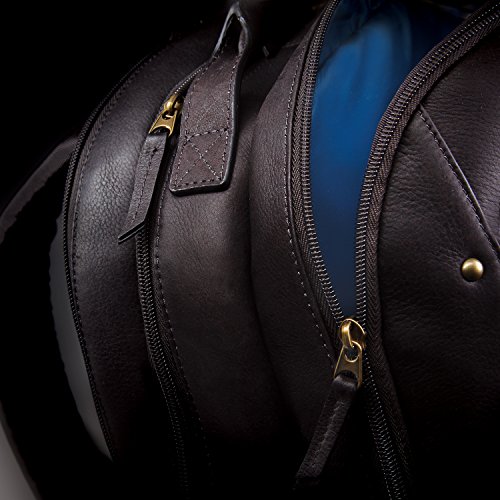 - Feature : Padded compartment protects laptops up to 15.6" / Quick access pocket and front zip-down organizer section / Blue interior lining / Padded backpack straps provide extreme comfort / Full-grain leather body with carry handle