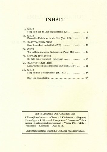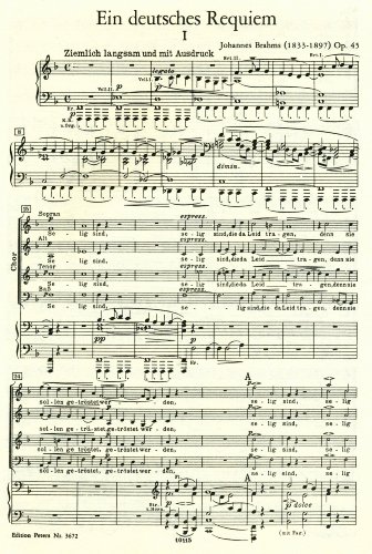 Brahms - A German Requiem - No. 3672 - Opus 45 - Vocal Score - German Text