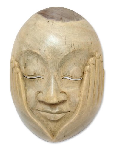 NOVICA Decorative Modern Hibiscus Wood Mask, Brown, 'Hear No Evil'