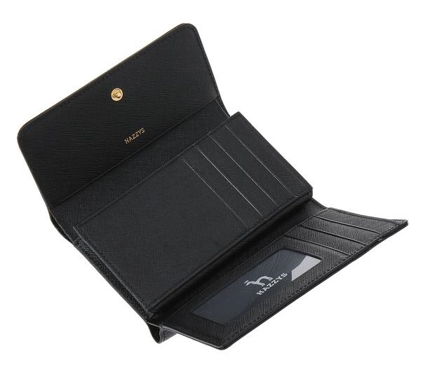 블랙 컬러에 헤지스 로고가 전면에 엠보싱 느낌으로 프린팅된 중지갑입니다. 지갑 중앙에 퍼피 패치가 헤지스만의 멋스러움이 나타나는 제품입니다.