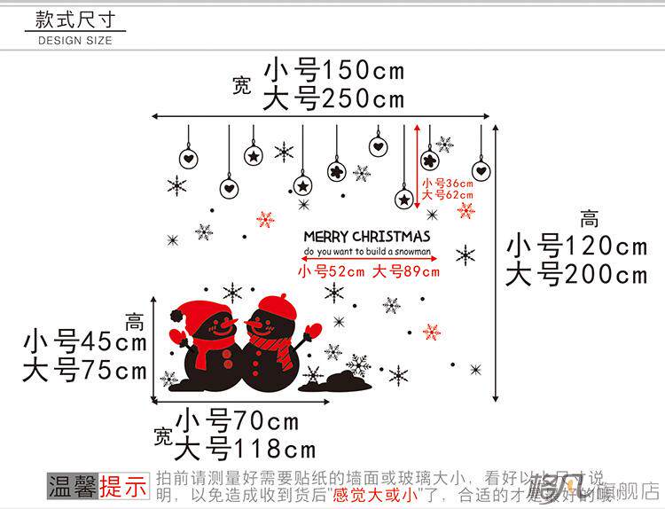 新年圣诞节冬天下雪花 雪人店铺橱窗贴画 玻璃装饰墙贴纸防水墙贴