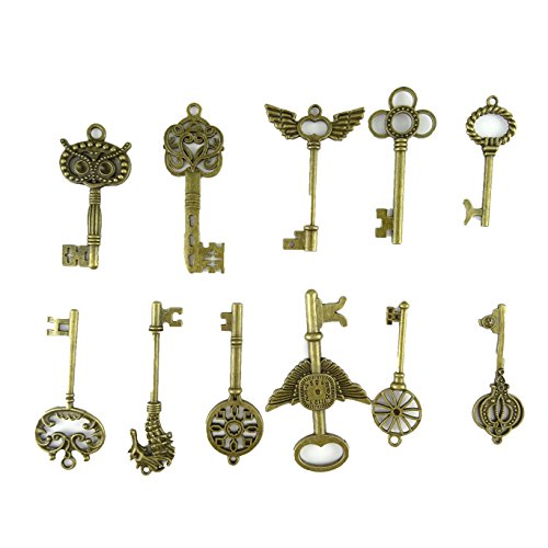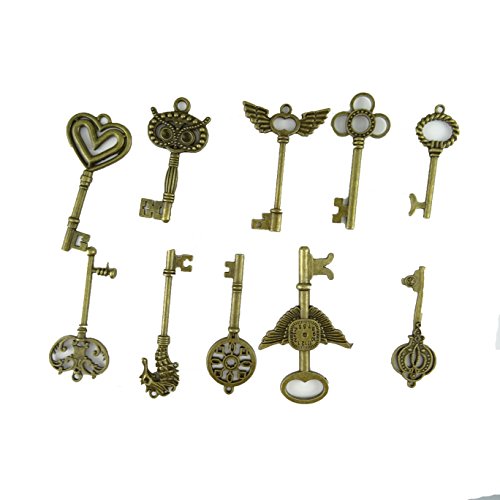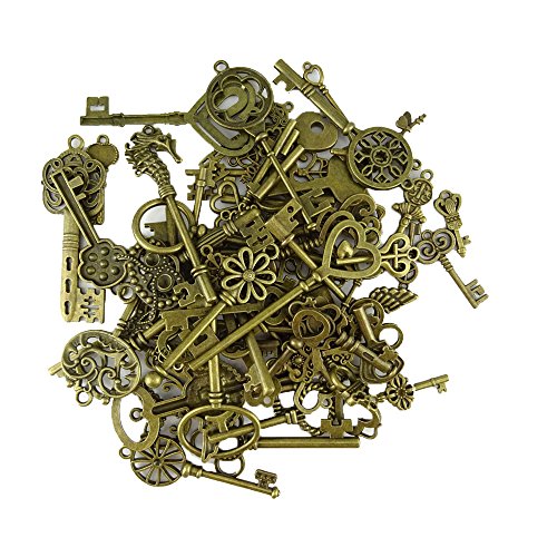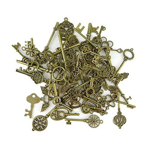 Honbay 69pcs Antique Bronze Vintage Skeleton Keys Charm Set, Jewelry Making Charms Craft keys Decorative Key Lot Heart Bow Punk Charm, DIY Handmade Accessories Necklace Pendants