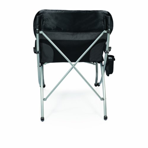 Studio : Picnic Time (Sports-non license) Publisher : Picnic Time (Sports-non license) Binding : Sports Product Description This Picnic Time PT-XL extra large portable camp chair provides ultimate comfort when it's time to just hang out by the fire, or at the beach. This comfy chair features a powder-coated inward-folding steel frame that is covered in durable 900D polyester with an attractive ripstop weave and heavy-duty polyester mesh with a breathable backing. It offers an extra wide 23-inch seat that is 17-1/2 inches deep and has a 24 inch high headrest, and has padded armrests with a handy hanging beverage pocket on the right side of the chair. This awesome camp chair folds down to a compact size for transport and storage and comes with a matching drawstring carry bag with shoulder strap. With a maximum weight capacity of 400 pounds, you can be 'livin' large' by the campfire, on picnics, or at the beach. Chair measures 36 high by 26 wide by 31 long when open. Folded up, it measures 41 long by 8-1/2 wide by 7-1/2 high. 0