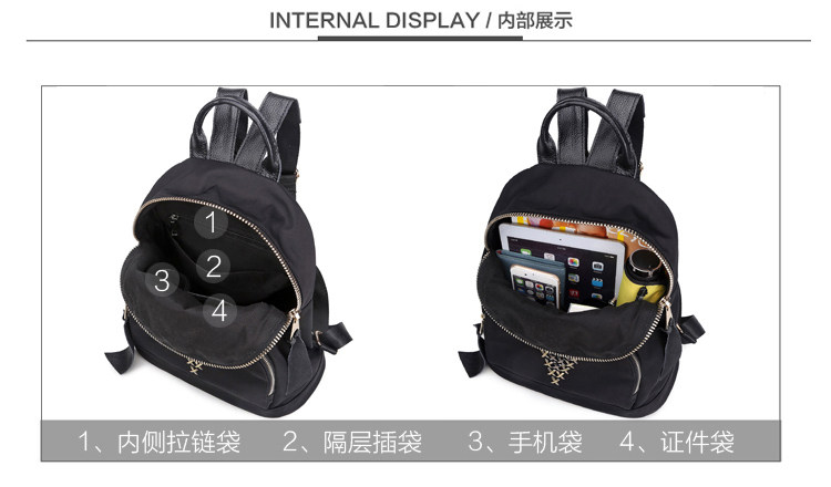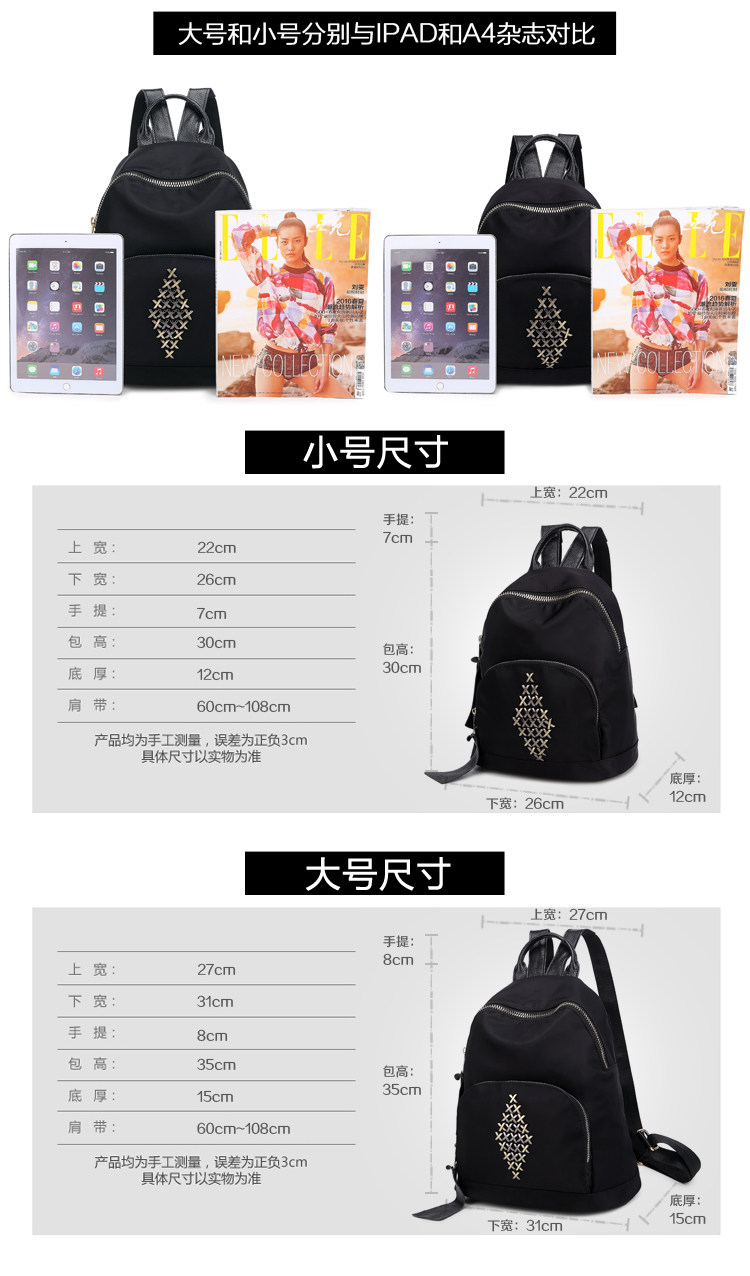 牛津布双肩包女韩版休闲简约铆钉百搭尼龙背包潮学院风学生书包