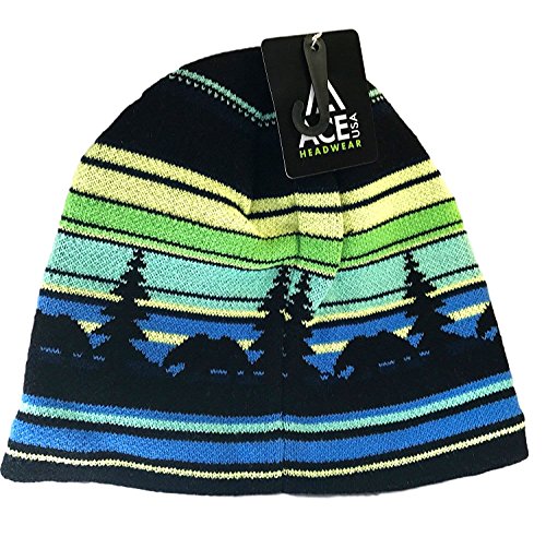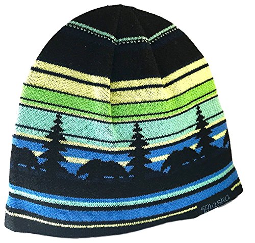 Alaska Beanie Hat Skull Rustic Bear Stripe Knit Stocking Hat