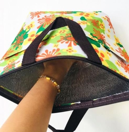 EatingBiting(R)Waterproof Insulation Warmer Cooler Green Flower Leaf Pattern Lunch Bag Tote Insulated Cooler Carry Bag , For Travel and Picnic, Colorful Flower Pattern,Very Nice Bag
