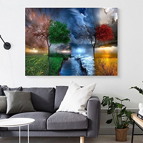 DIY Diamond Painting Cross Stitch Craft Kit Wall Stickers for Living Room Decoration(12X18inch/30X45CM) Four seasons tree