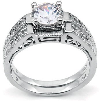 - Title : Sterling Silver Cubic Zirconia CZ Wedding Engagement Ring Set Sz 6