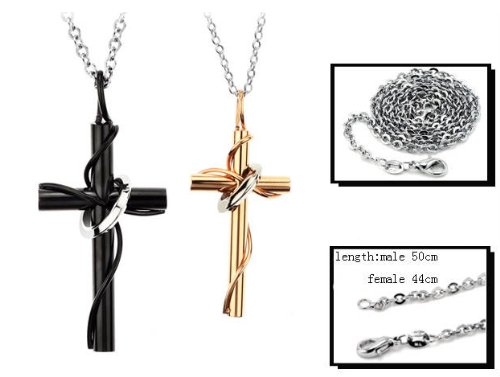- Feature : Fashion Women's Gold Plated Lingering Cross Ring Wrap Titanium Steel Couple Pendant Necklace / Titanium Steel Couple Style Pendant Necklace / Perfect gift for any occasions that will surely make a memorable impression / Comes with a fashionable chiffon gift pouch to make this gift even more impressive / Hassle-free return & exchange policy. Satisfaction guarantee