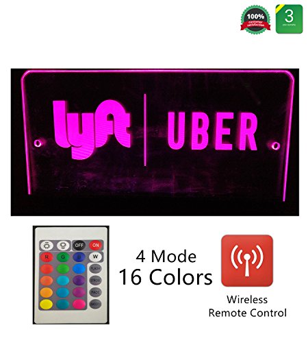 UBER SIGN GLOW LED Light Logo Decal Stickers with Wireless Remote Control 4 Light mode 16 Adjustable Colors 4 Bigger Stronger Suction Cups Removable For Rideshare Driver UBER LYFT Light Up Sign