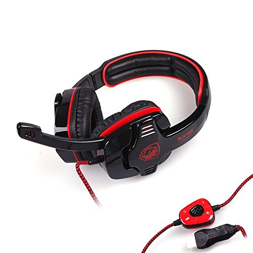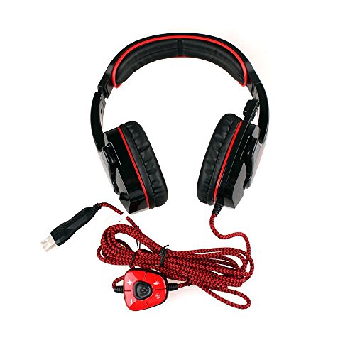 Sades SADES SA901 7.1 Surround Sound Stereo Professionelle PC USB Gaming Headsets Stirnband Kopfhorer mit Mikrophon tiefe Basse Over-the-Ear-Lautstarkeregler fur PC Gamers (Rot)