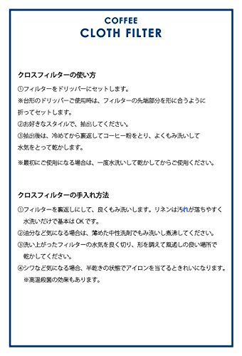 크로스 필터는 반복해 사용 가능한,환경에 친절한 린넨제의 필터입니다.100%오리지날의 린넨 원단은 환기성보다 뛰어나고, 마르도 빨리 버섯의 발생을 억제하는 특징을 소유고 있습니다.절의 적은세 번째의 실을 사용하고, 커피 추출에 최적인 박아 넣고 짜여 있습니다. 시판 원추형드리퍼전반으로 쓸만하고, 첨단을 끼워 넣으면 사다리꼴형드리퍼나 커피 메이커에세트가능합니다.평상시 마셔 있는 커피를 원 랭크 업 시키는 툴입니다.