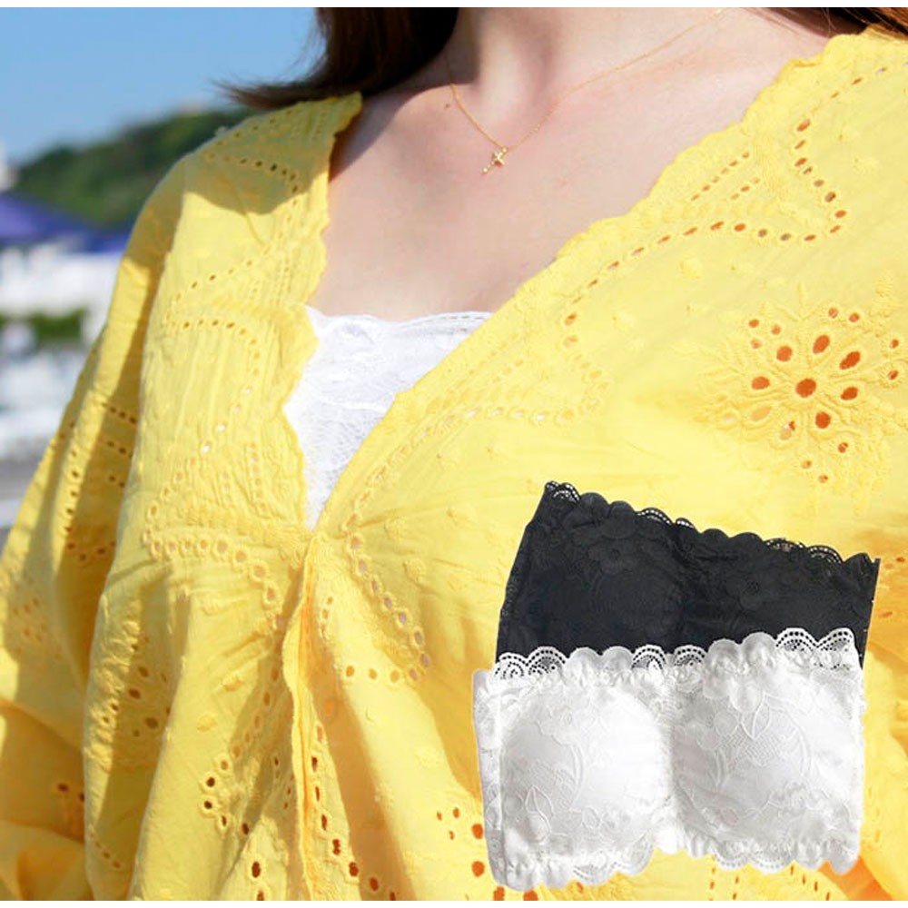 オフショルやスキッパーシャツなどのデコルテや肩を見せるアイテムのインナーにも使え、tシャツの上からビスチェ感覚でもご利用いただけます