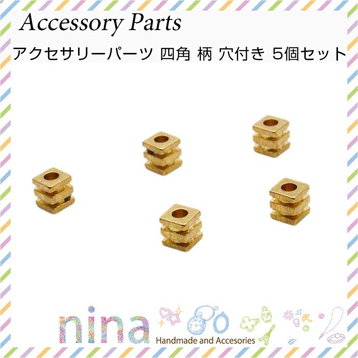 ■商品名:アクセサリーパーツ 四角 柄 穴付き 5個セット