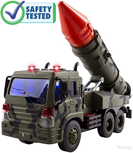 -. Title : WolVol Friction Powered Military Fighter Truck Toy with Lights and Sounds for Kids, Can Move the Launcher (Batteries Included)
