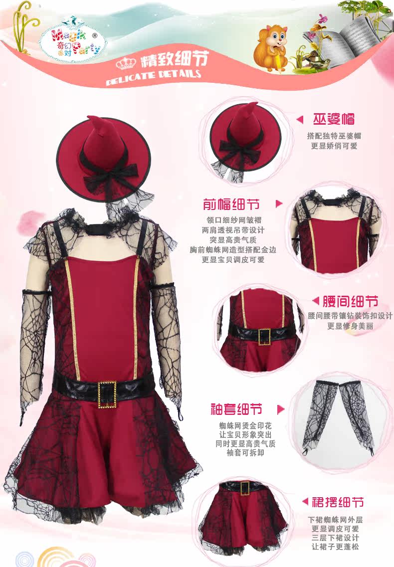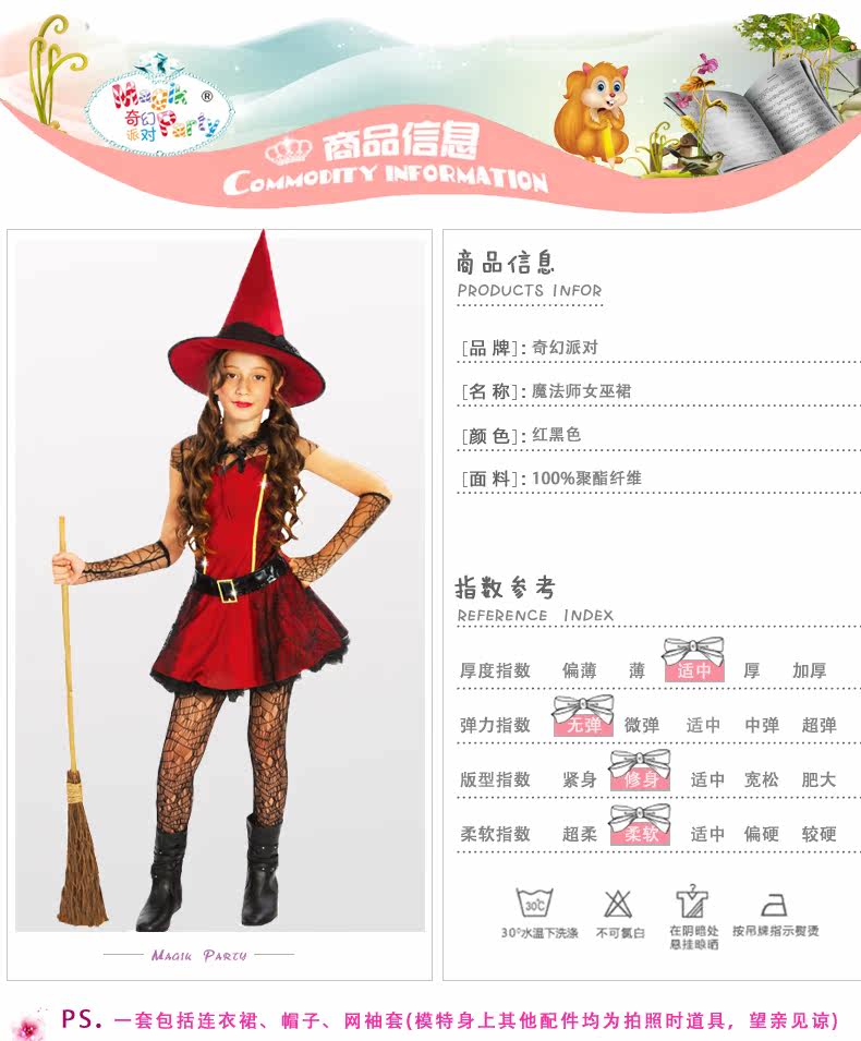 万圣节Cosplay化妆舞会派对长裙演出亲子衣服儿童女巫服装魔法师