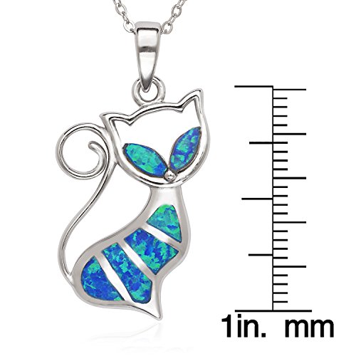 This cat pendant necklace is inlaid with created blue opal for a unique look. The sterling silver necklace has a high polish finish, and the 18-inch Italian diamond-cut sparkling cable chain secures with a spring ring clasp