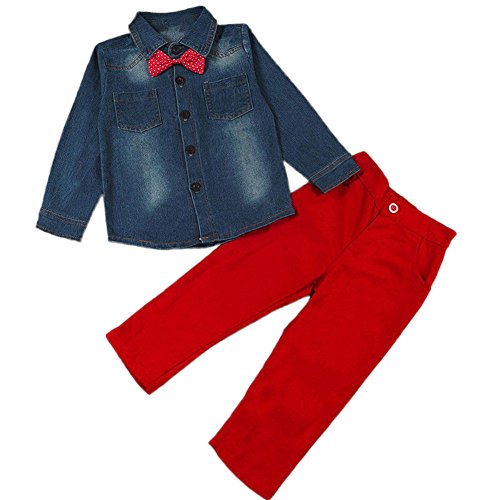 -. Title : FAVOLOOK Toddler Kids Baby Boys Denim Coat Long Pants Clothes Outfits Set with Detachable Bow Tie