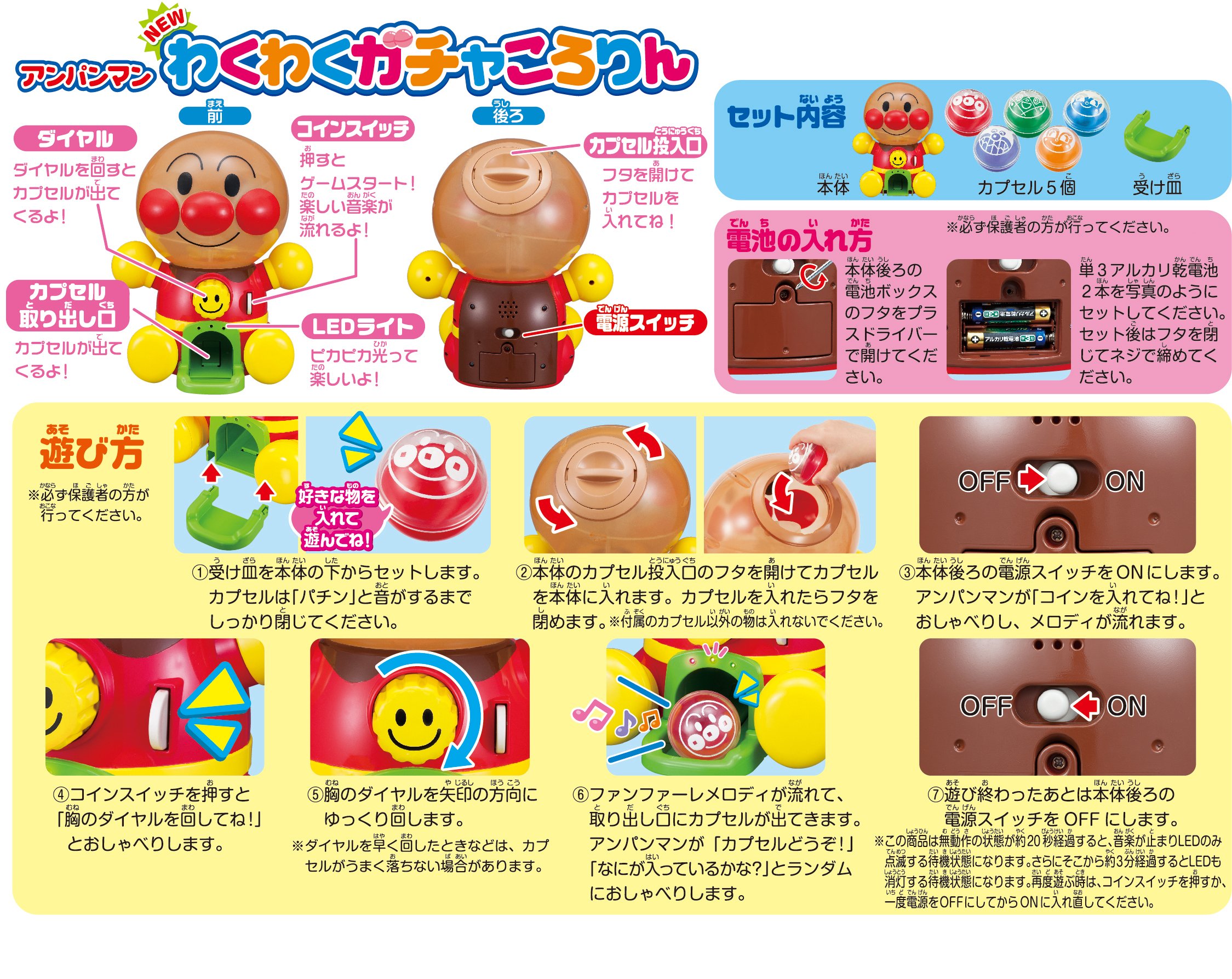 ● Capsule is decorated with cute design by Anpanman and fellows.