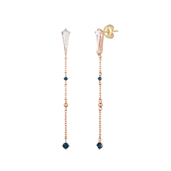 * 드롭되는 슬릭한 체인 위에 블루 컬러 스톤과 메탈볼이 리드미컬하게 세팅된 이어링 디자인