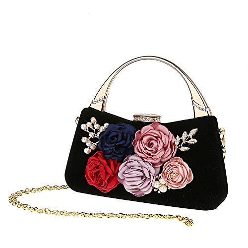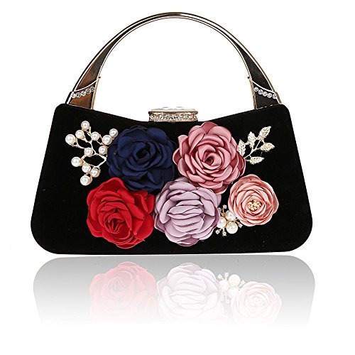 ELEOPTION Women's Flower Evening Purse Handbag Metal Frame Large Clutch Bag Wedding Handbags Carved Handle