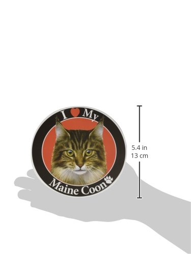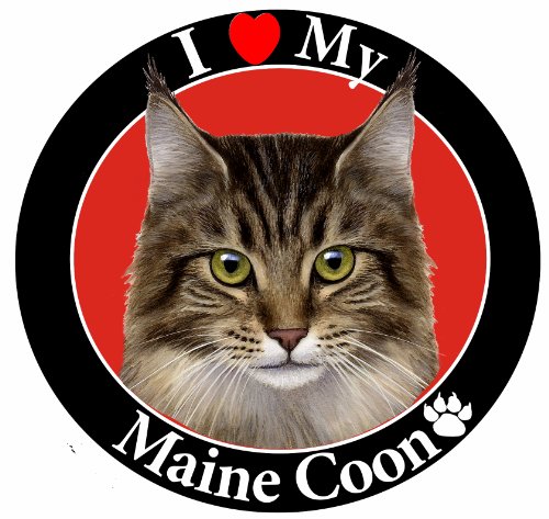 "I Love My Maine Coon Cat" Car Magnet With Realistic Looking Maine Coon Cat Photograph In The Center Covered In UV Gloss For Weather and Fading Protection Circle Shaped Magnet Measures 5.25 Inches Diameter