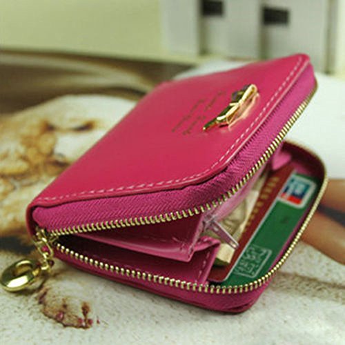 -. Feature : Material: Faux leather / Size: 10.5 x 8.5 x 2.5CM approx. / It features 2 cash notes slots, one zipper slot and 4 cards holder slots / Fashion and unique / 8 colors for choice