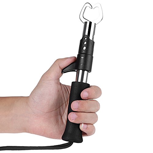 -. Feature : - Allows anglers to land the fish, remove the hook, measure and release / - Made of stainless steel tube and EVA handle, durable to use / - Extra wide opening, clip fish firmer, safe and reliable to hook fish / - Easy to use, one hand operation