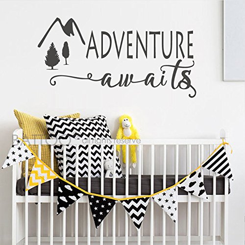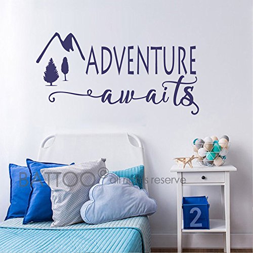 -. Title : BATTOO Adventure Awaits Wall Decal Stickers - Adventure Quotes Travel Theme Wall Decor - Wanderlust Wall Decal - Mountain Wall Decal Bedroom Decor