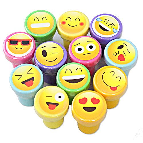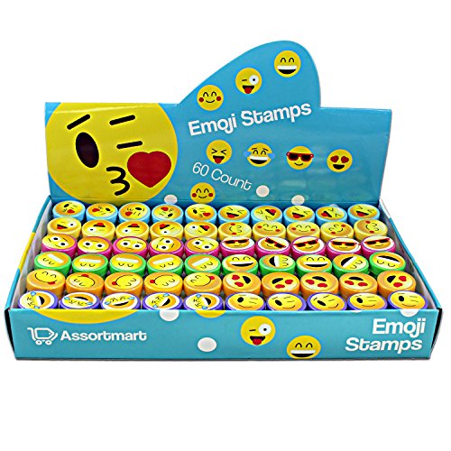 Studio : Assortmart Publisher : Assortmart Binding : Toy Product Description Add a groovy flair to all your crafts and stationary with this set of 60 Assorted Emoji Stamps! They're perfect for arts and crafts, scrapbooking, and kids' party favor bags. Each set includes 60 stamps featuring 12 of your favorite emoji expressions. 0