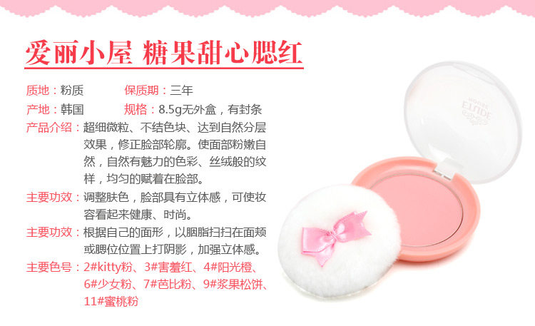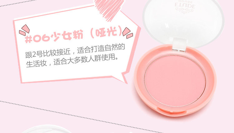 ☆時尚蘋果光妝效必備重點,甜蜜粉腮紅悄悄在妳微笑臉頰上綻放,像朵光彩奪目的鮮花,甜蜜粉紅色彩自然修飾雙頰,讓妳的笑靨人見人愛更加燦爛動人!