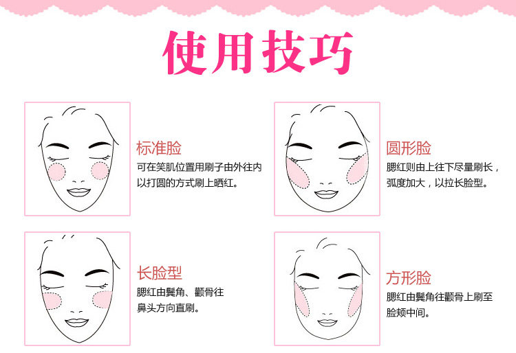 根据自己的面形,以胭脂扫扫在面颊或腮位位置上打阴影,加强立体感.