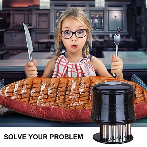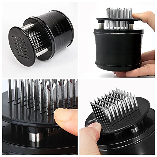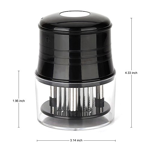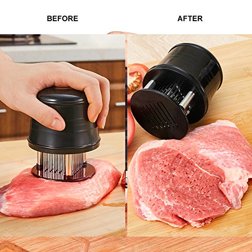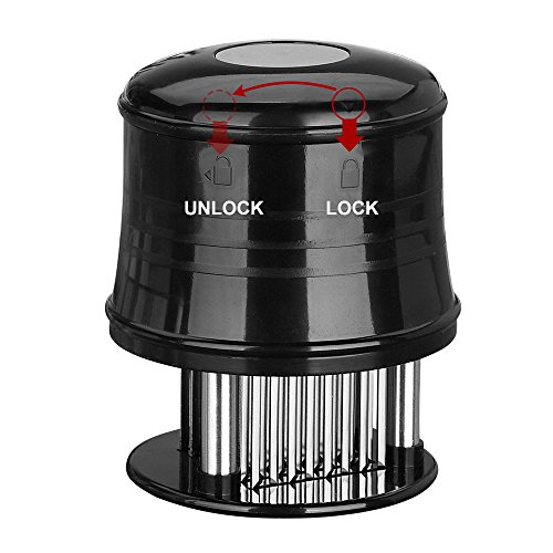 Are you still looking for a kitchen tool to make your food tastier? Vizpet meat tenderizer can not only make your food more delicious, but also reduces the baking time. The lightweight and sturdy tenderizer is prefect for tendering steak, chicken breast, pork, fish and other meat types. Not only can shorten the cooking time, but also make the meat easier to chew and improve taste. Not plug teeth, more relaxed to enjoy the delicious. Instructions: 1.56 stainless steel long needles are easy to operate and penetrating power. 2.Have transparent cover to protect and flapper can be easy to clean. 3.It has highly versatile for large pieces of lunch meat and western beef steak .