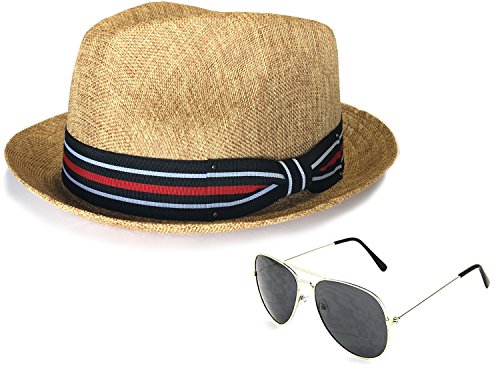 Binding : Apparel Product Description Great fedora for summertime or anytime! LIGHTWEIGHT, It is easy to carry and pack and is decorated with a beautiful ribbon stripe. This Linen fedora hat, also it will look great on women as well. Use it casually or for dress, this hat will go well with any outfit. Protect your face in the hot summer sun and save your skin against hot rays. Fedoras are available in a variety of styles and colors. The hat comes in a combined kit with aviator glasses. 0