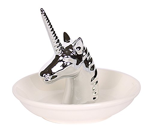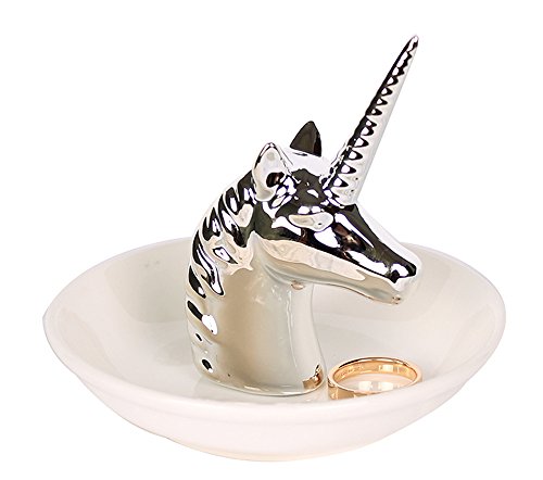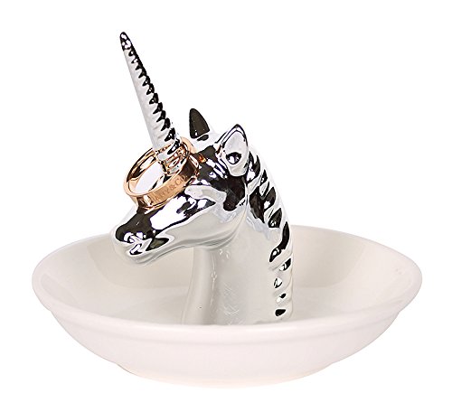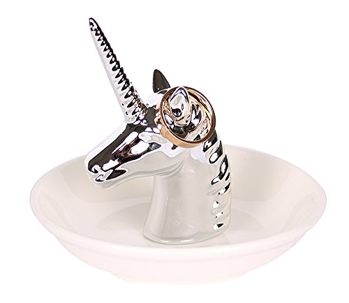 Fans Face Ceramic Jewelry Display Ring Holder Trays Decor Dish Organizer, Silver Unicorn