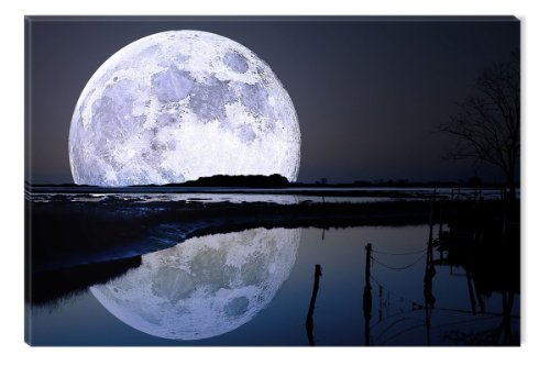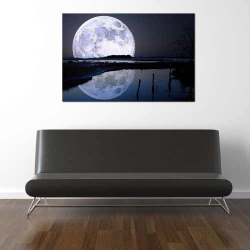-. Title : Startonight Wall Art Canvas Full Moon Water Reflection, Sky USA Design for Home Decor, Dual View Surprise Artwork Modern Framed Ready to Hang Wall Art 23.62 X 35.43 Inch 100% Original Art Painting!