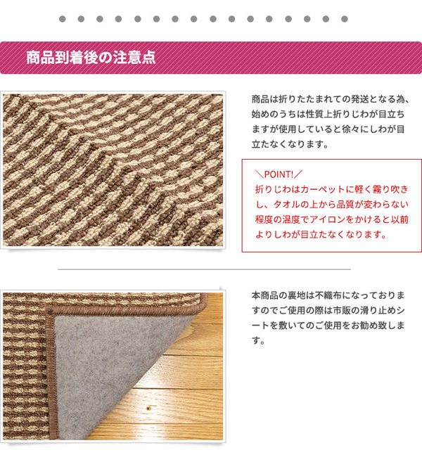 ※本製品の裏地は不織布になっておりますのでご使用の際は市販のすべり止めシートを敷いてのご使用をお勧めいたします。