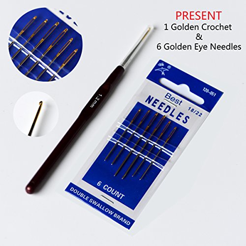 SIZE- Each ball of thread 9g net , and single Ball size 5 * 5 * 4 cm (all weights and measurements are approximate.) Every pack with the present: 1 Golden Crochet & Golden Eye Needles.