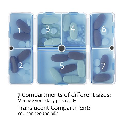 7 Compartments with 7 clear lids: Each lid can prevent the pills from rolling around