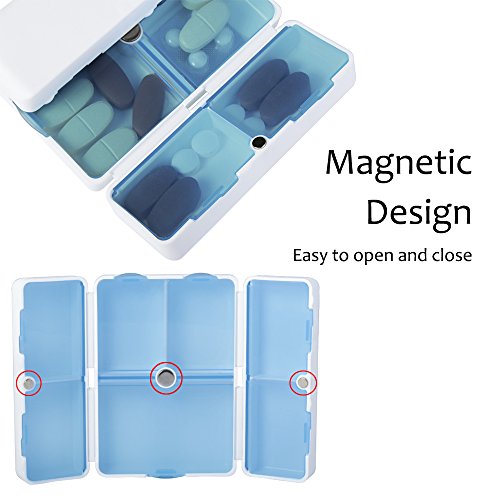 Magnetic Foldable Pill Box Case (2 Pack), Opret 7 Compartments Portable...