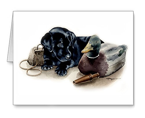 -. Feature : Black Labrador Puppy artwork by watercolor artist DJ Rogers. / Note card size is 4.25 x 5.5 inches / Matching white envelopes included. / Note cards are blank inside for your personal message. / Suitable for framing.