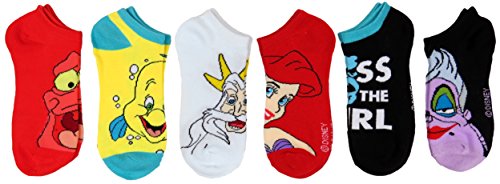 -. Title : The Little Mermaid Ariel Womens 6 pack Socks (Black/Red/Yellow, One Size)