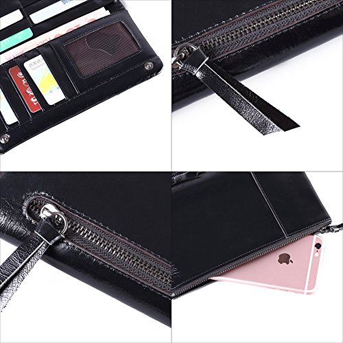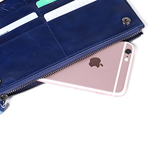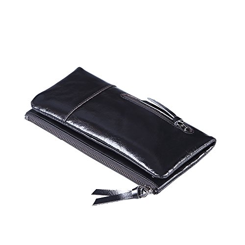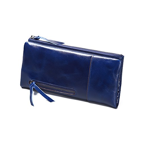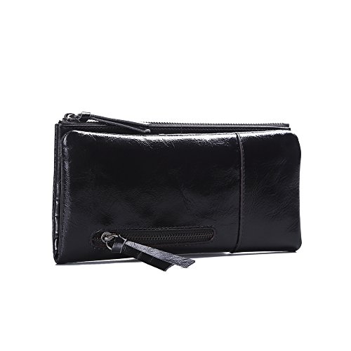 -. Title : Women Genuine Leather Vintage Billfold Long Wallet Clutch Zipper Money Clip
