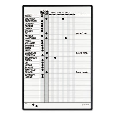 -. Feature : Easily track in/out status, time of return or jot notes. / Duramax porcelain surface that will not scratch, dent, stain or ghost. / Versatile, magnetic surface doubles as a bulletin board. / Contemporary, black aluminum frame complements any office dcor. / Mounts easily to walls.