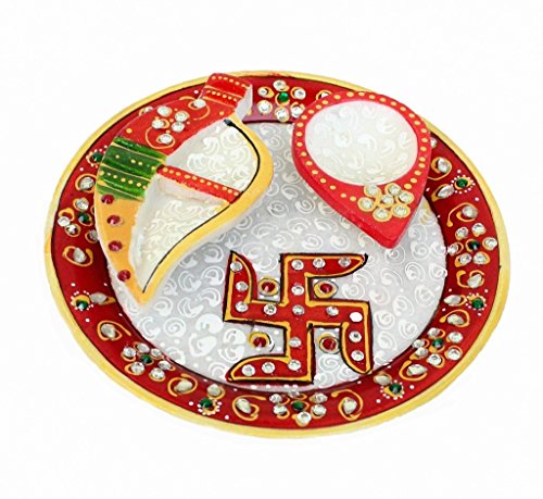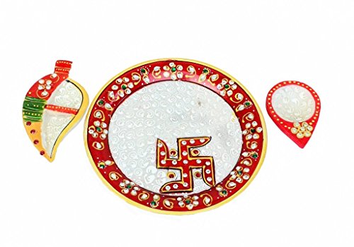 Crafticia Indian Craft Rajasthani Pink City Jaipur Unique Marble Traditional Handmade Handicraft Spiritual Pooja / Puja Plate Set 6 inch Decorative Christmas Xmas Gift Item Home Decor Showpiece