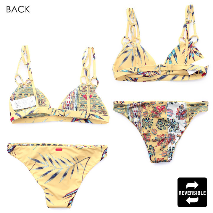 ダブルの肩紐を背中でクロスし、バックスタイルを魅力的に見せるデザイン。腰のあたりのテープ使いでの肌見せも大人な雰囲気を演出してくれます。リバーシブル仕様で、どちらで使用してもおしゃれで使い勝手の良さがうれしいポイント。※このアイテムは日本サイズです。